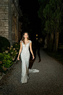 Una sensuale silhouette a sirena, interamente ricamata, per questo secondo abito cucito ad hoc per esaltare la bellezza di Emi Renata. Perfetto per la cena placé quest’abito fasciante che avvolge ed esalta il corpo della sposa anche grazie a un suggestivo effetto luminoso.