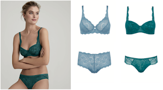 Il modello focus di questa linea è il reggiseno a balconcino alla francese con mezze coppe imbottite e preformate in pizzo all-over, che dona al seno una forma arrotondata e naturale mentre le spalline, con rifiniture in pizzo, regalano una perfetta vestibilità.