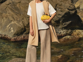 Il color sabbia e il beige, contrastati da tonalità vivaci che dall’azzurro vanno fino al corallo e al color curry, danno vita alla palette perfetta per la bella stagione. Gli ampi orizzonti e il bagliore del sole caratterizzano queste giornate, ideali per sfoggiare i look dell’estate. Gonne fluide e top leggeri, sono perfetti per una giornata in riva al mare o in cima a una scogliera. Gli accessori completano il look: un cappello a cloche, delle scarpe slip-on e l’iconica Pasticcino Bag.