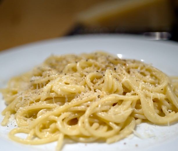Ci vogliono 5 minuti per preparare i famosi spaghetti cacio e pepe.